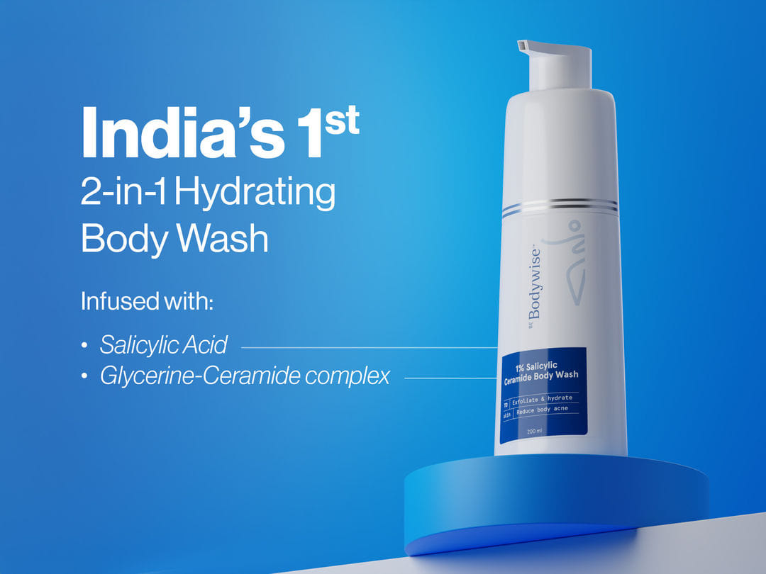 Introducing the Be Bodywise 1% Salicylic Ceramide Bodywash – India’s first dual-pump 2-in-1 bodywash that treats body acne and dry skin while deeply hydrating dry skin.